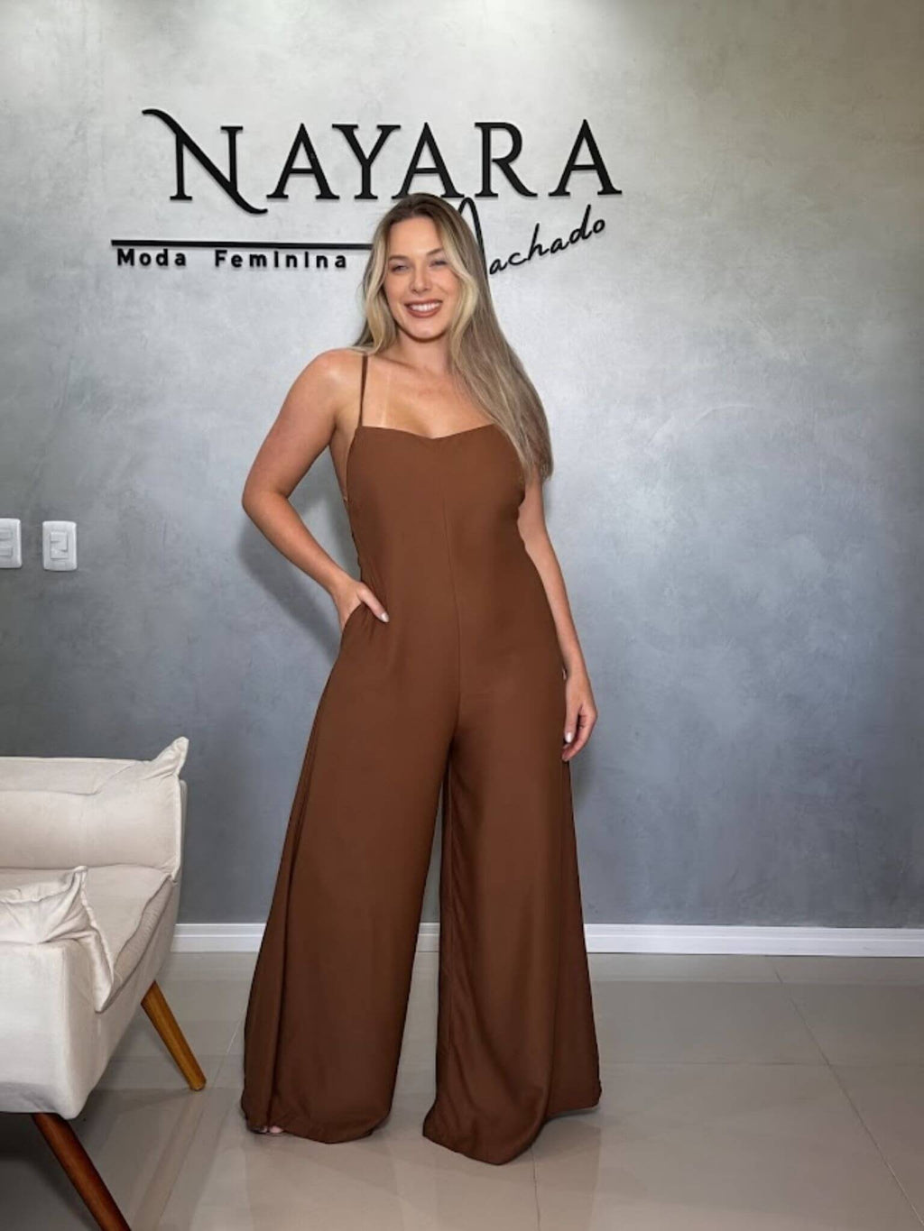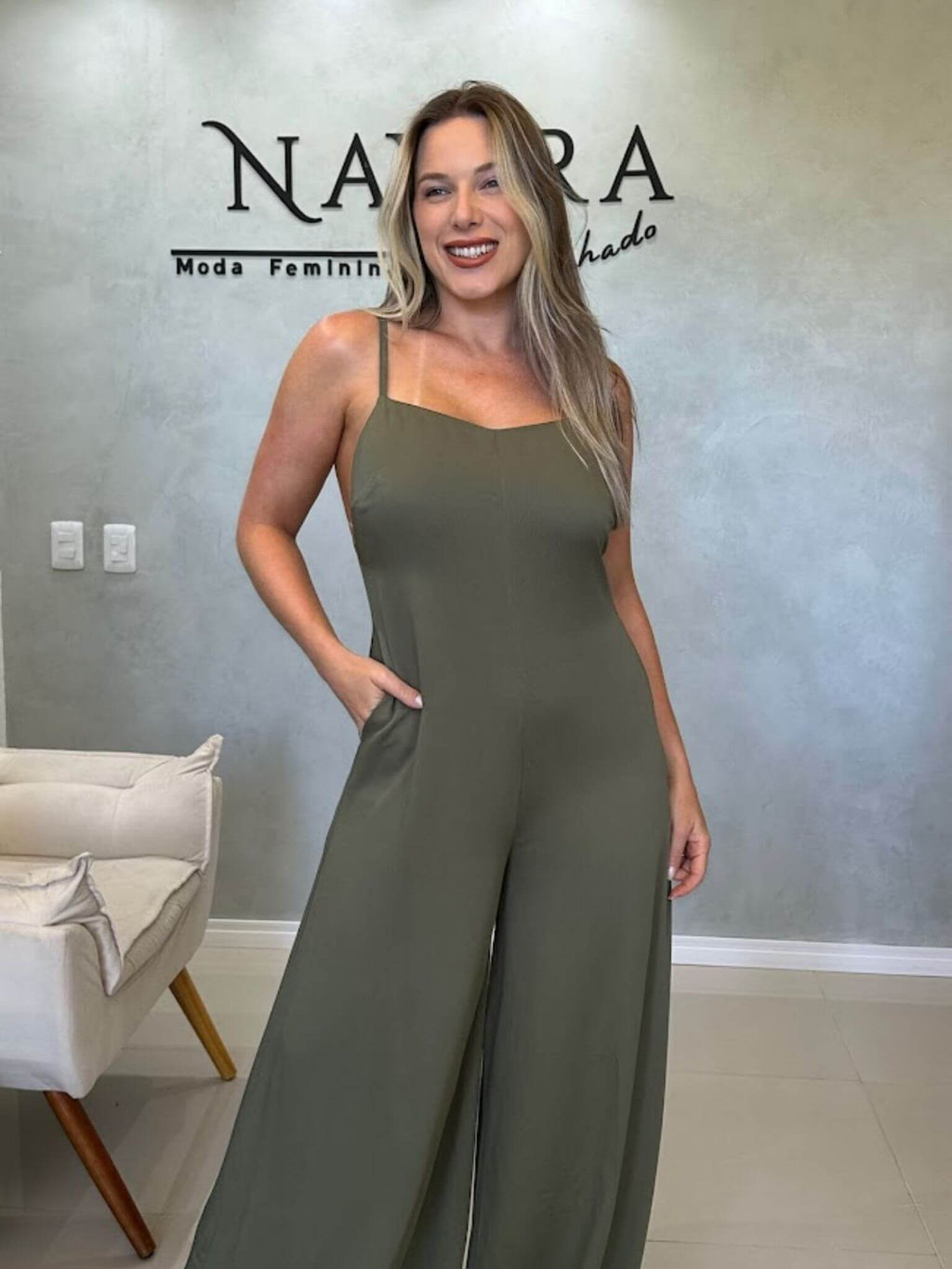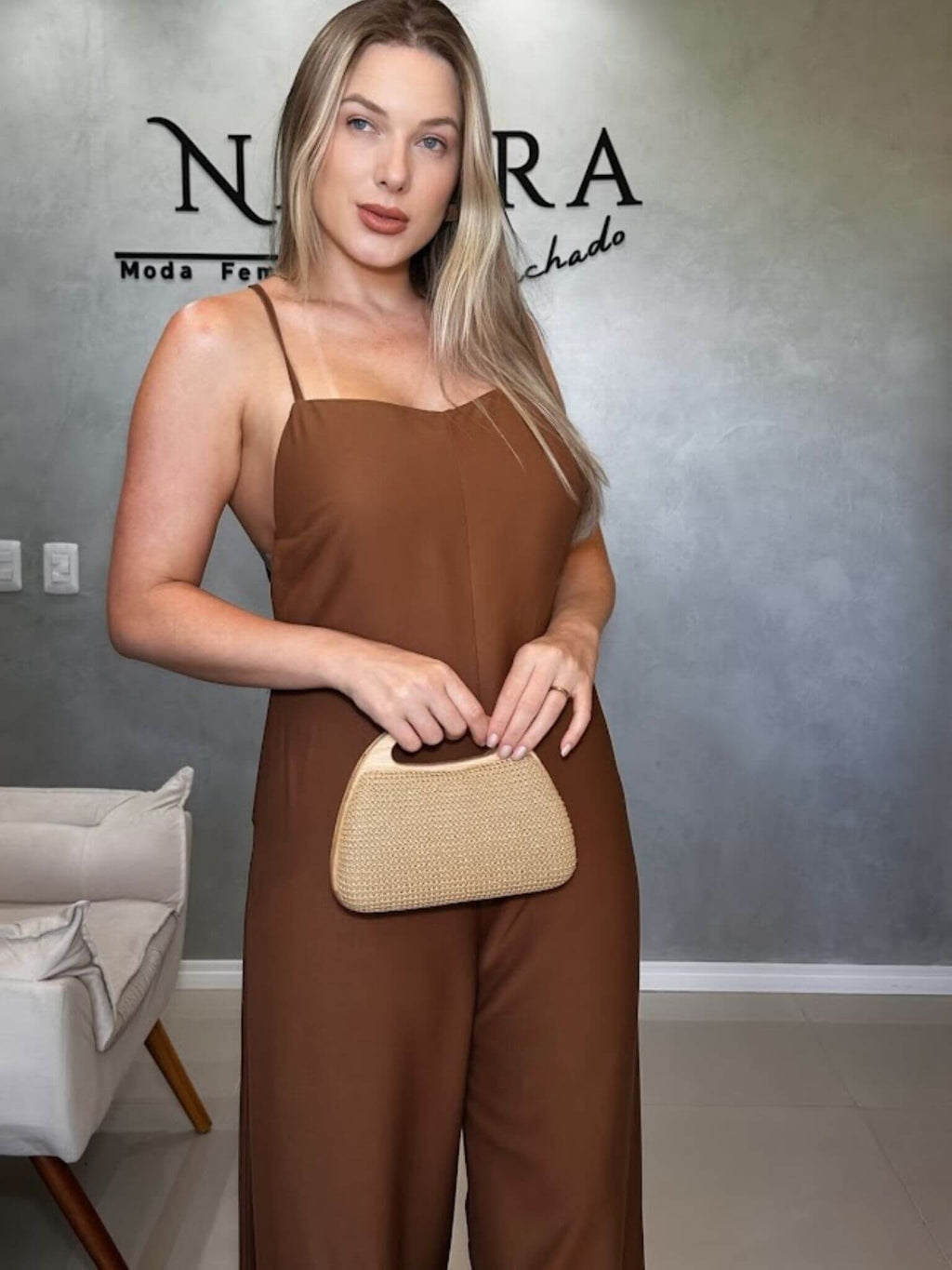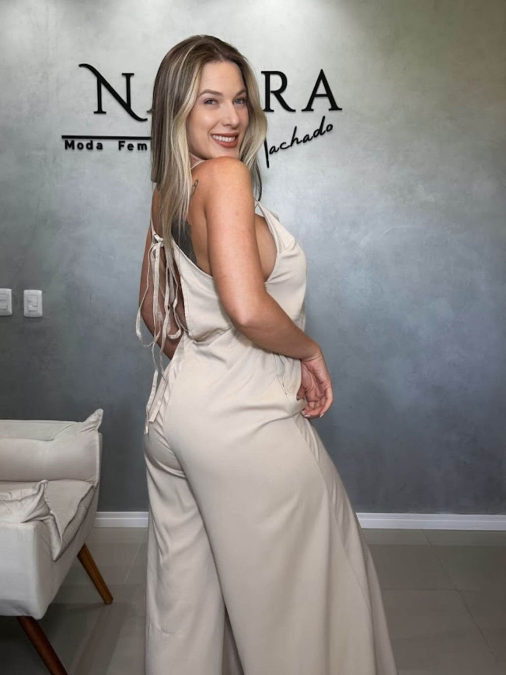 O Macacão Ofélia, em viscolinho, combina elegância e conforto. As costas abertas com regulagem garantem ajuste perfeito. Sem bojo, mas todo forrado, ele traz segurança e fluidez. Veste do 36 ao 42, adaptando-se com charme a diferentes silhuetas. Uma peça versátil para looks sofisticados em qualquer ocasião.