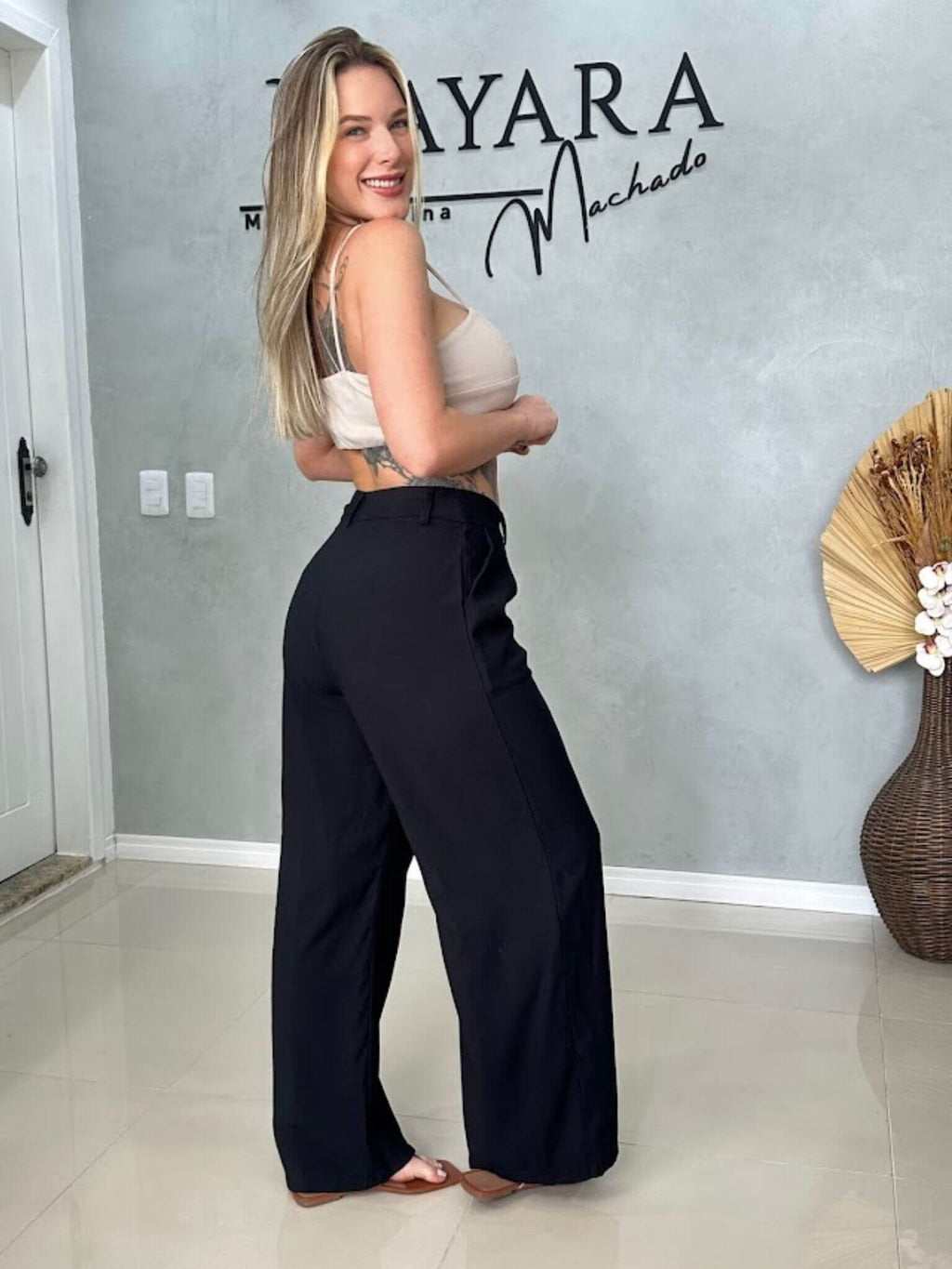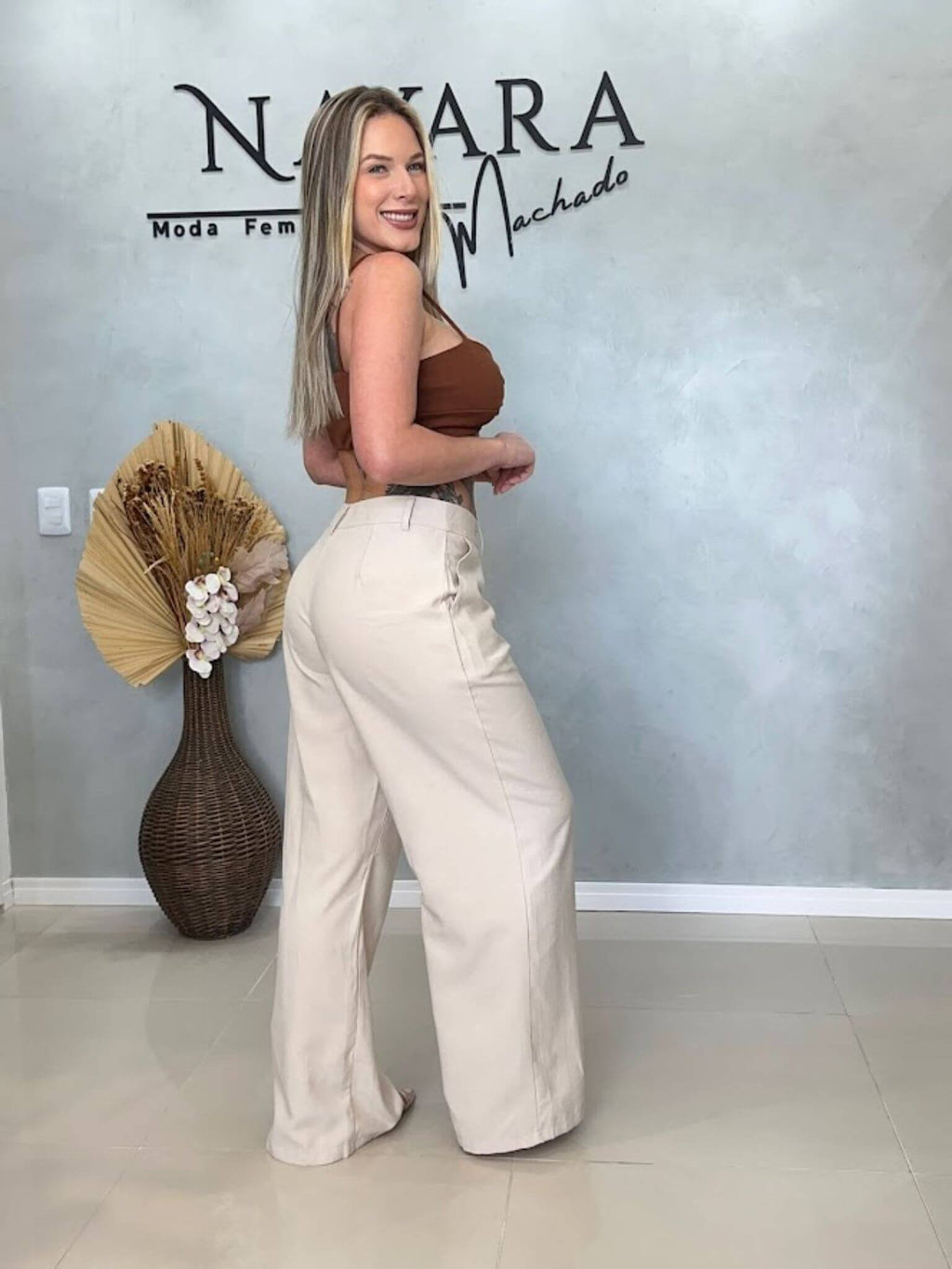 Invista em uma calça pantalona que une sofisticação, caimento perfeito e conforto duradouro, tornando-se um verdadeiro coringa no seu guarda-roupa.