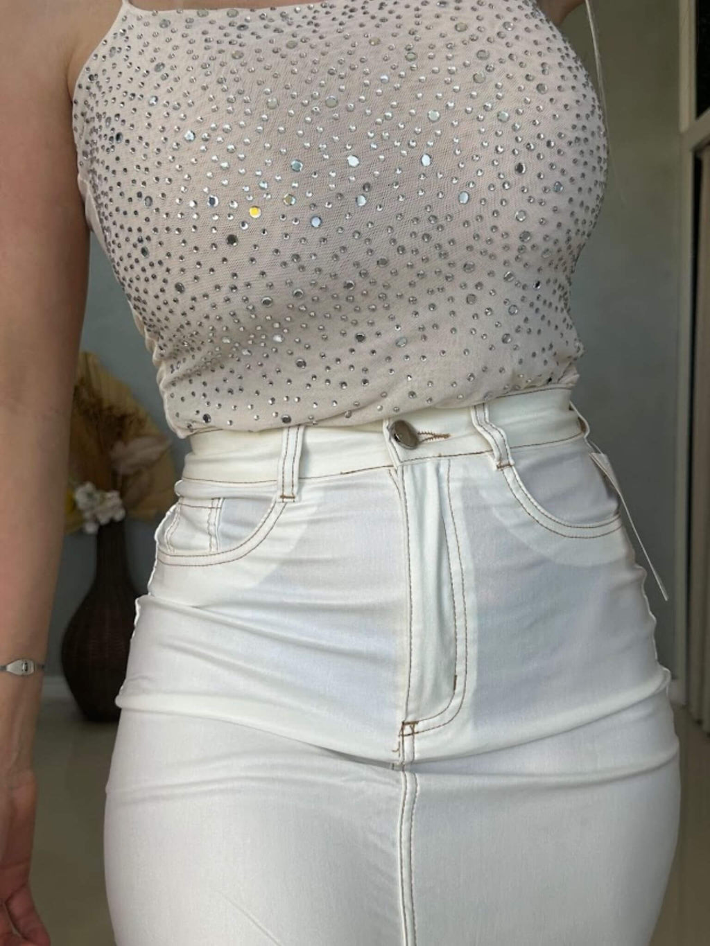 • zíper e botão frontal;